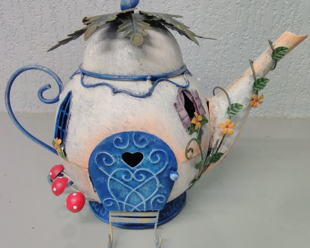 Beautifully crafted miniture metal Fairy Teapot House garden orniment. Expertly hand painted, with a rustic finish.