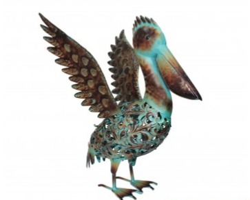 Fabulous patterns light up the garden at night time from the solar light within the cut out patterned body of this raised wings pelican.